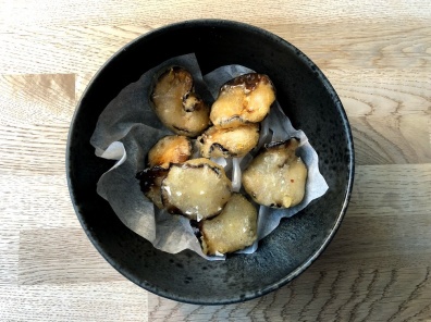 korianderskud, citronmelisse, ponzu, saltet Aji amarillomayo og puffede vilde ris