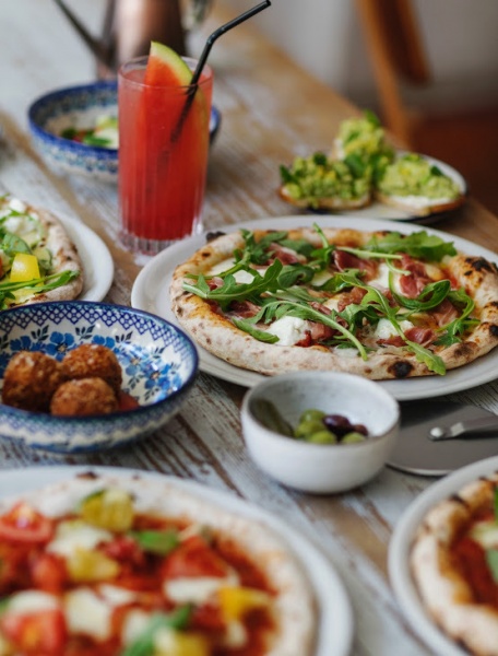 We always offer 4 different variants, with some being white pizzas and some being classics with tomato sauce. There is always a vegetarian option, but besides that, the commonalities are that everything is made with the freshest ingredients.